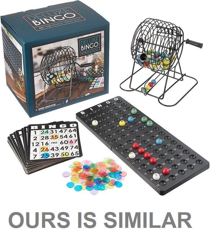 ROYAL BINGO DELUXE BINGO GAME SET WITH 75 COLOURED BALLS, 300 BINGO CHIPS, 50 BINGO CARDS AND 6" BINGO CAGE (MODEL: GBIN-104)
