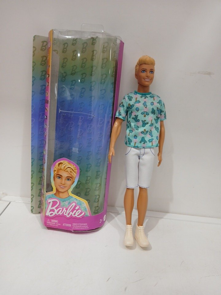 Barbie Fashionistas Ken Fashion Doll - 12" - blonde hair blue cactus tee white shorts and sneakers - (model: 211)