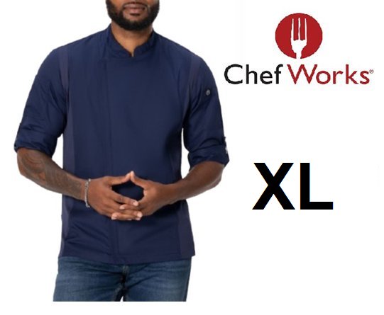 MEN'S CHEFWORKS short SLEEVE zip up CHEF COAT - extra large - navy