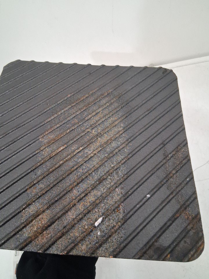 Burned food residue on bottom of press indicates prior short-term use. (See photos)