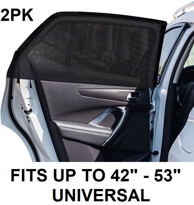2PK large elastic mesh sun shades for car windows - universal - fits up to 42" - 53" windows - black