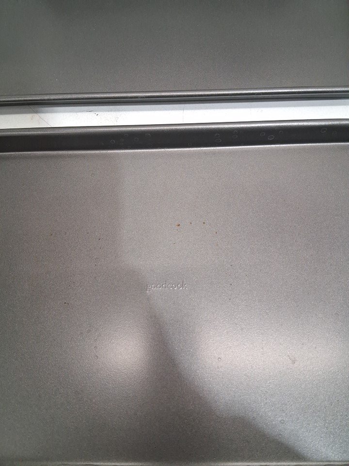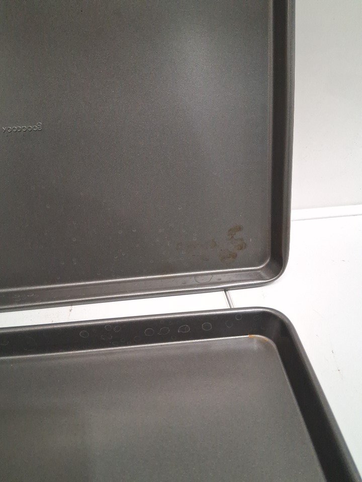 these pans do show signs of previous use and droplets from being washed previously, see photos.