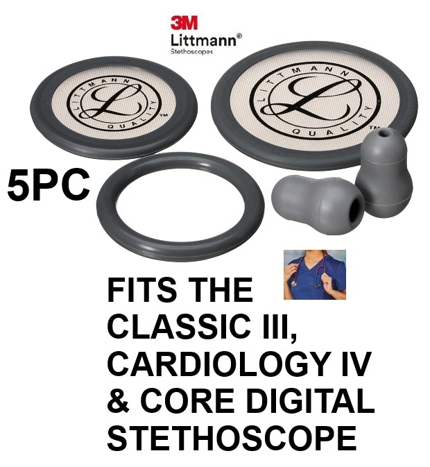 5pc 3M Littmann Stethoscope Spare Parts Kit-FITS THE CLASSIC III, CARDIOLOGY IV & CORE DIGITAL STETHOSCOPE-grey (Model: 40017)