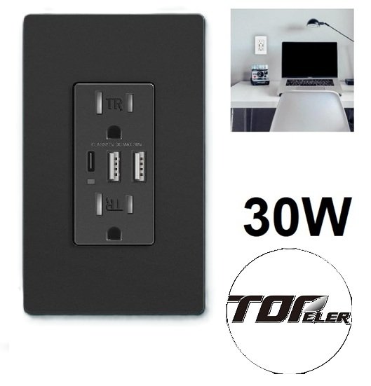 topeler Tamper Resistant Electrical Sockets with usb charging - 30w - black (model: EWU142A)