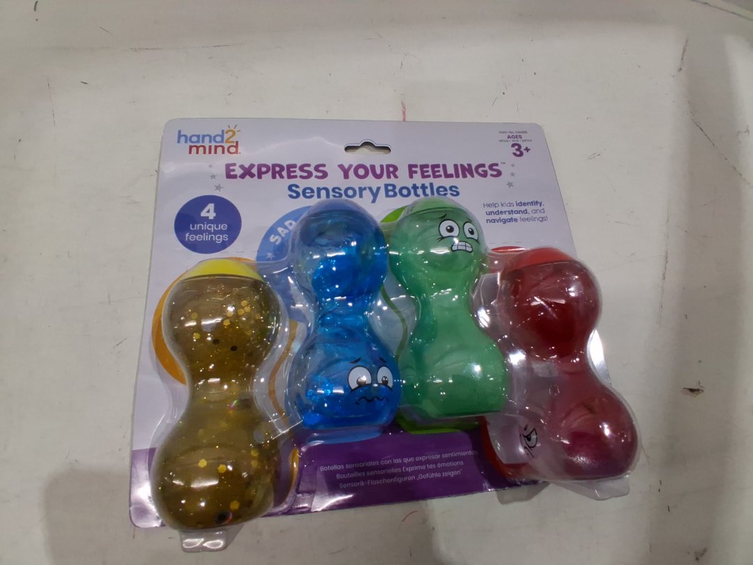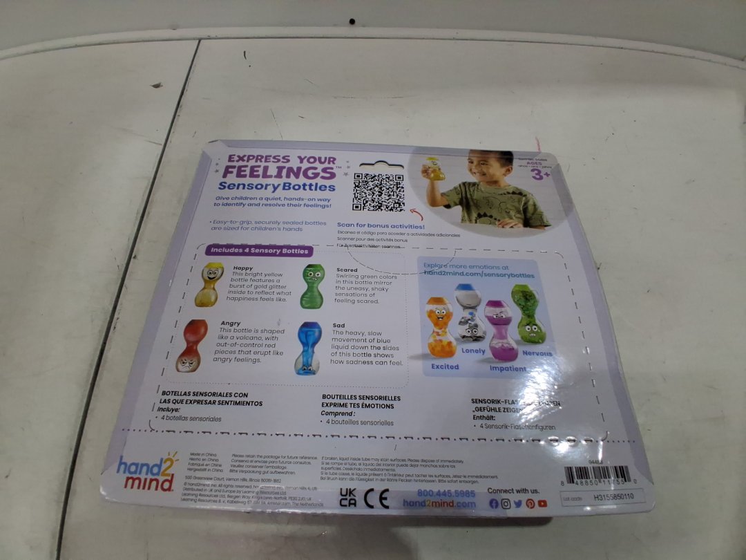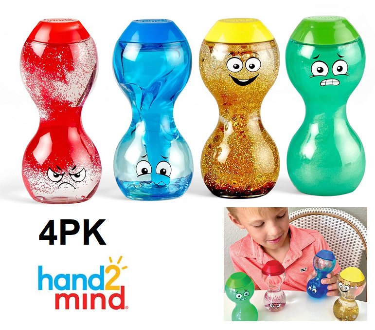 4PK HAND2MIND EXPRESS YOUR FEELINGs SENSORY BOTTLES - HAPPY/SAD/SCARED/ANGRY - blue/red/gold/green (model: 94488)