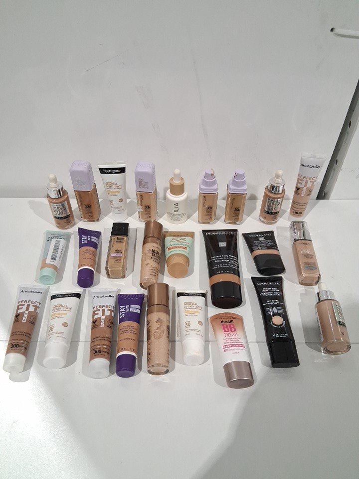 26 ASSORTED LIQUID FOUNDATIONS - VARIOUS BRANDS/SIZES