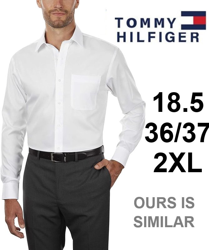 men's tommy hilfiger regular fit long sleeve button down collared shirt - 18.5 36/37 2xL - white