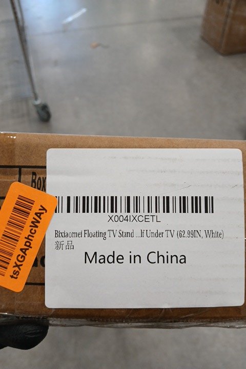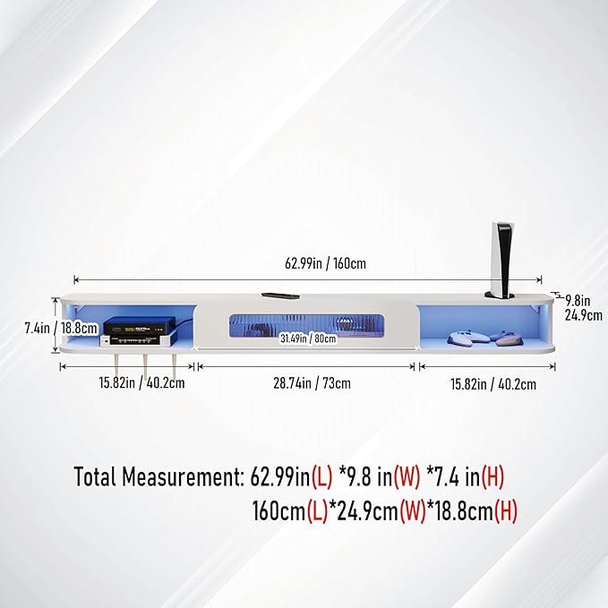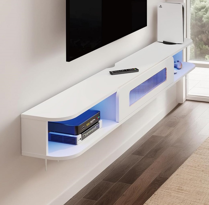 Bixiaomei Floating TV Unit Console unit with LED lights and textured glass window door - 63" - White