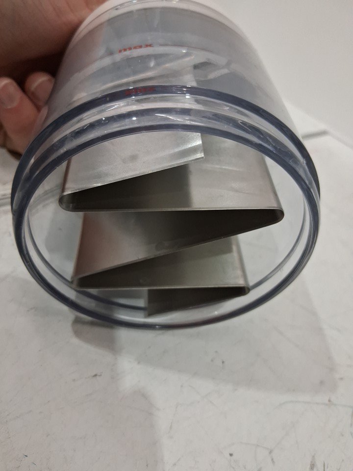water marks on the blades and some scratching on the plastic cover indicating prior use