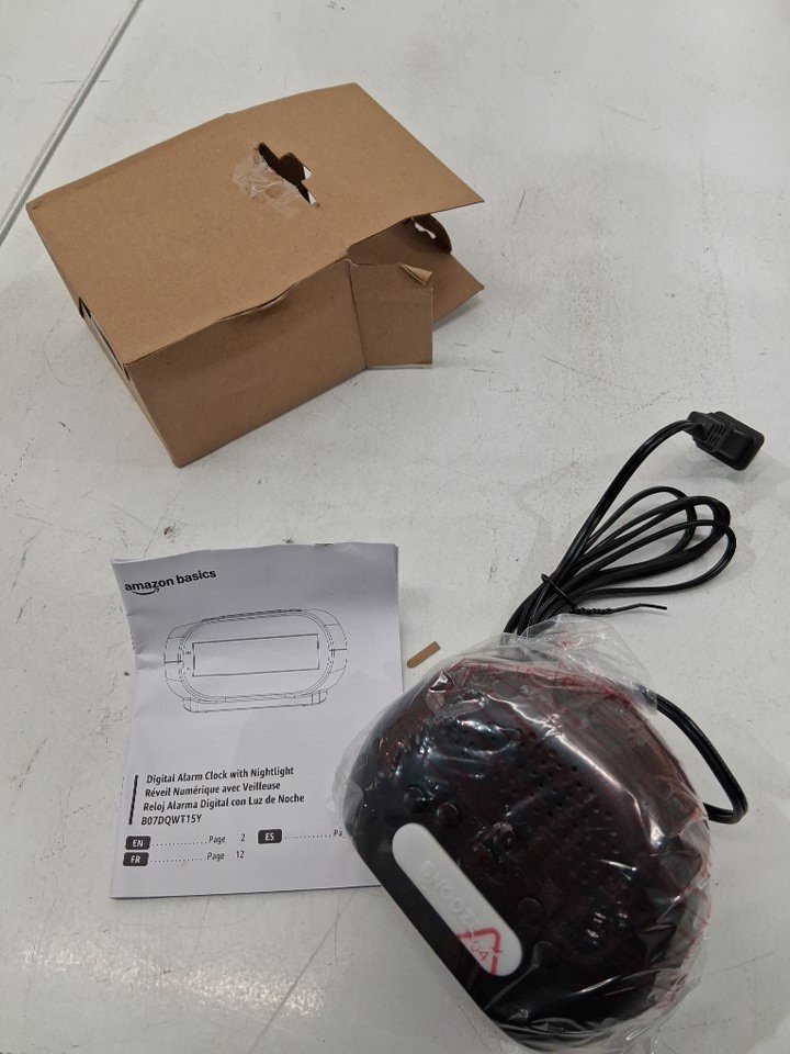 AMAZONBASICS Small DIGITAL led display ALARM CLOCK WITH NIGHTLIGHT & BATTERY BACKUP - 4.5" X 2.4"- black (model: b07dqwt15y)