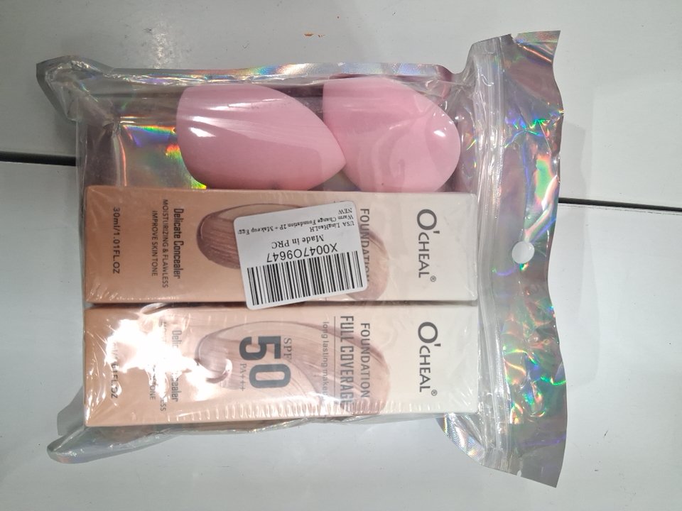 2 2pc o'cheal full coverage liquid foundation with beauty blender - 03 temperature discoloration