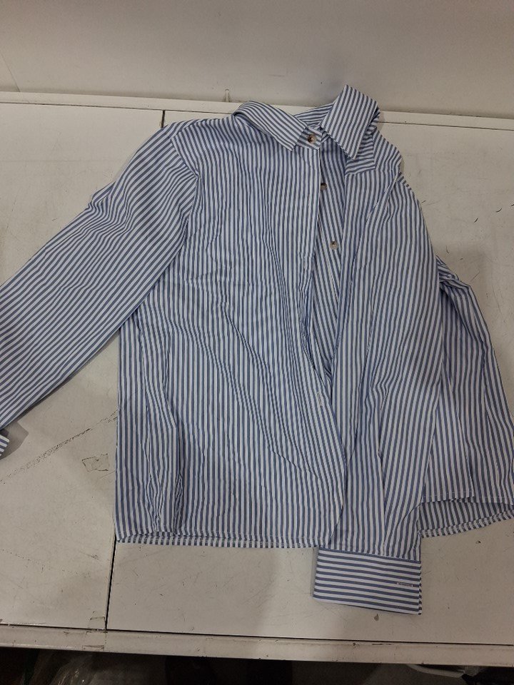 WOMENS STRIPED LONG SLEEVE BUTTON UP SHIRT - LARGE - BLUE/WHITE