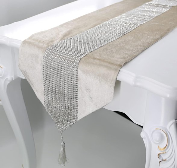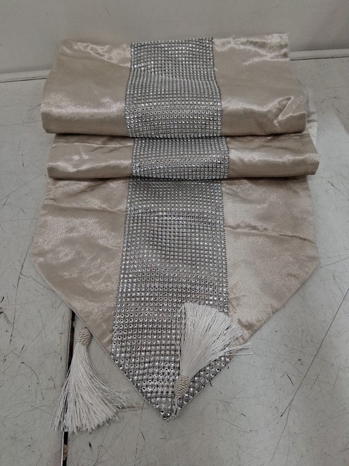 Handmade Silver Beaded Table Runner - 70'' x 12'' - Beige/Silver