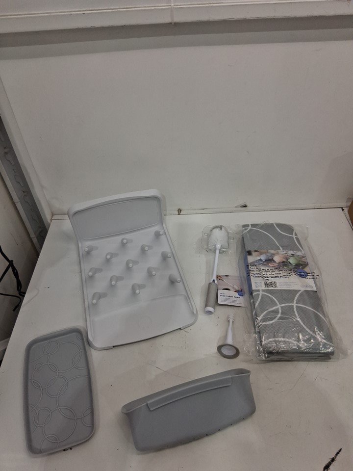 UBBI VERTICAL BABY BOTTLE DRYING RACK with accessories - HOLDS UP TO 13 BOTTLES - WHITE/GREY (MODEL: 10385-A)