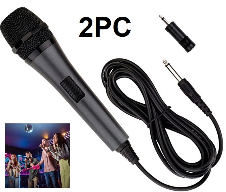2pc Microphone for Karaoke Singing Party Machine with adapter piece - black