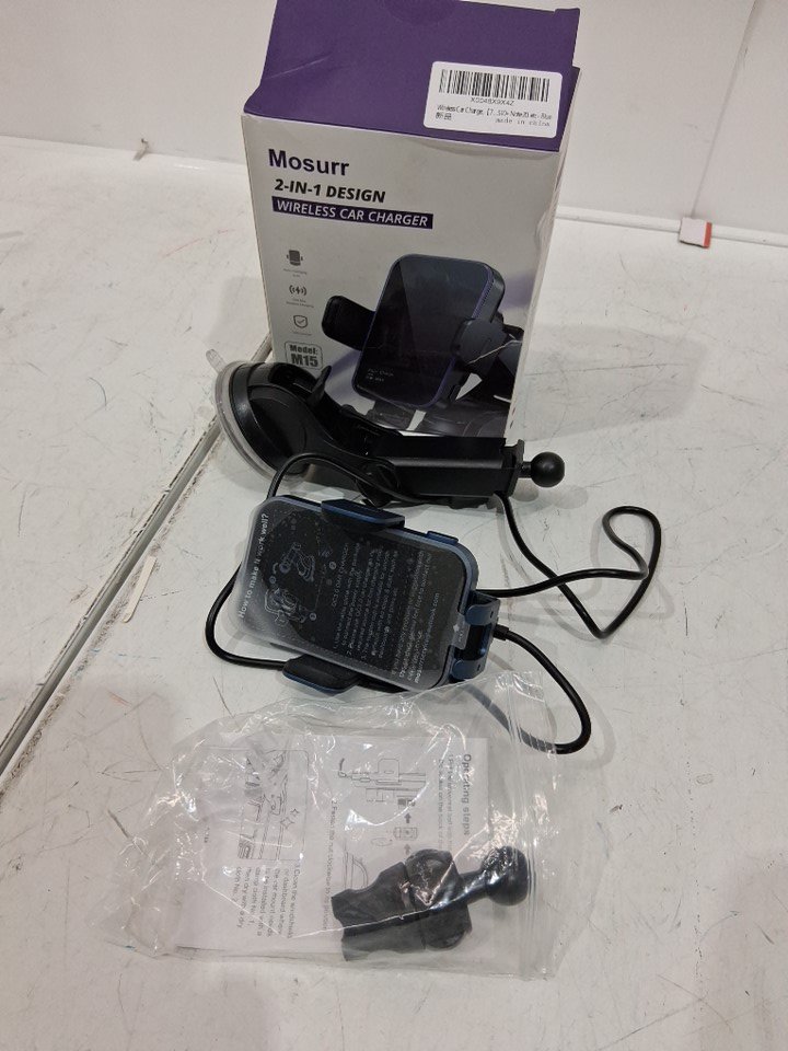 Mosurr wireless car phone charger mount - fits most phones / 15w - blue