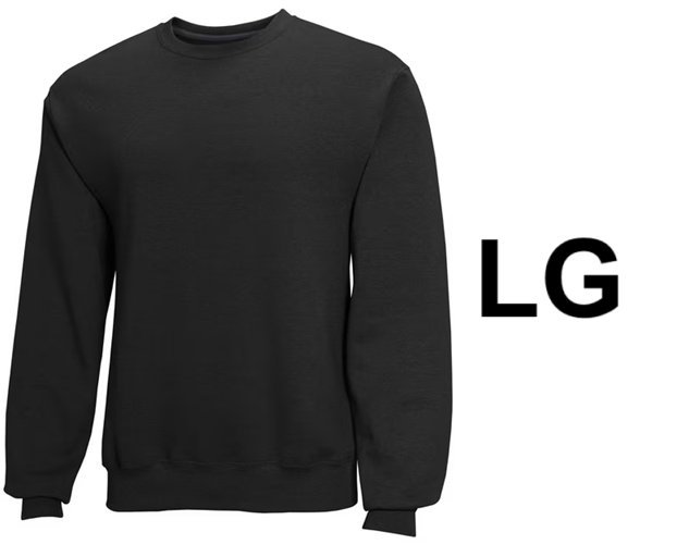 men's Fruit of the Loom Fleece Crew Neck Top - LARGE - BLACK