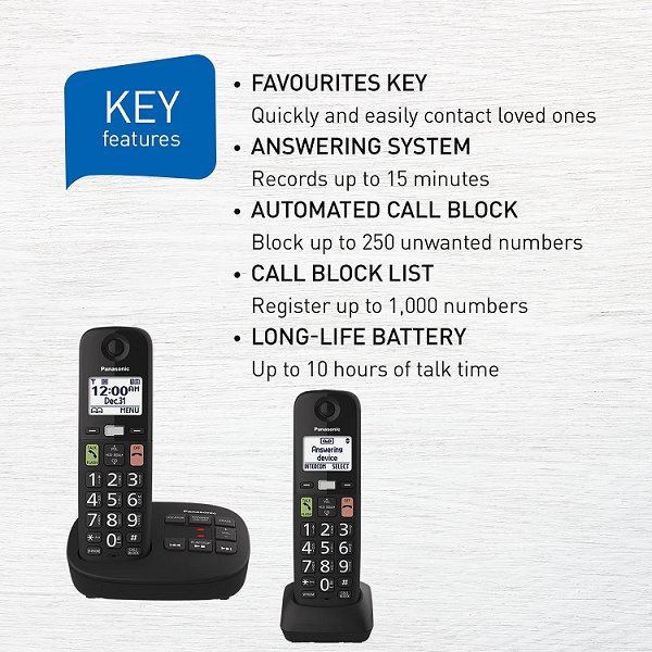 4pc Panasonic Cordless large displace 2 house phones with charging base - (Model: KX-TGU122C)