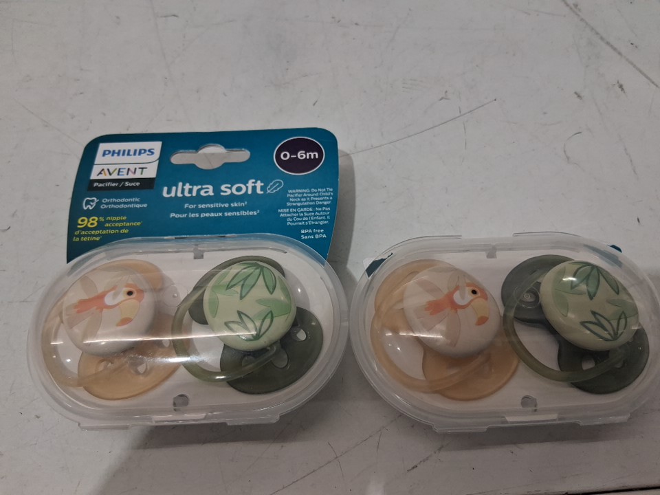 2 (2PK) PHILIPS AVENT ULTRA SOFT FLEXFIT PACIFIERS - 0-6 MONTHS - Toucan/Green Leaves