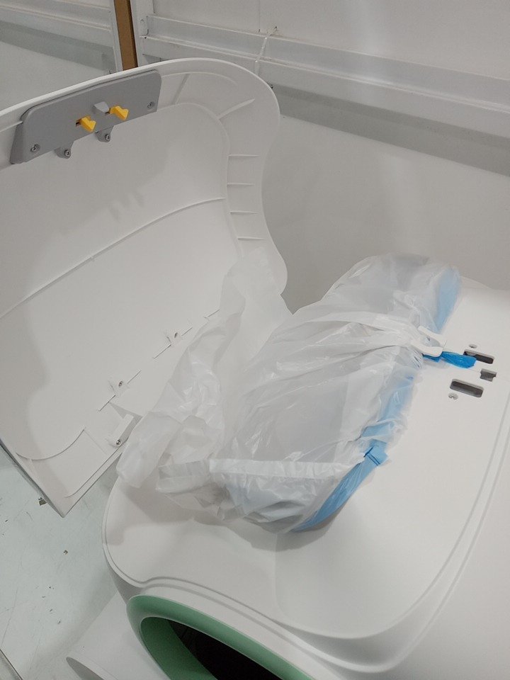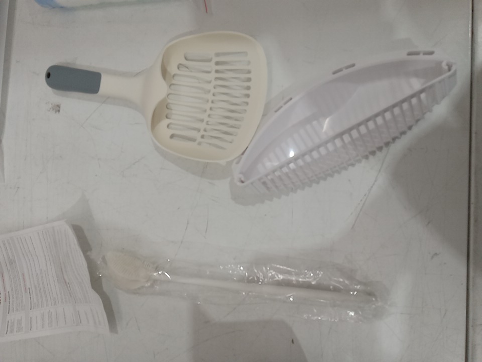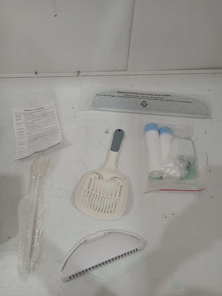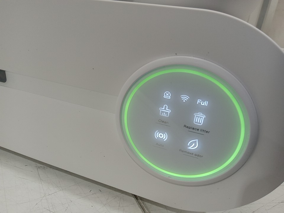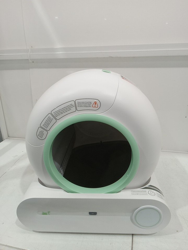 Please note that this product has been repackaged. There are minor dirt and hair residue inside the litter box, there are minor scratch marks around the cat litter box from previous use. Tested for power and motor function. (Please see photos)