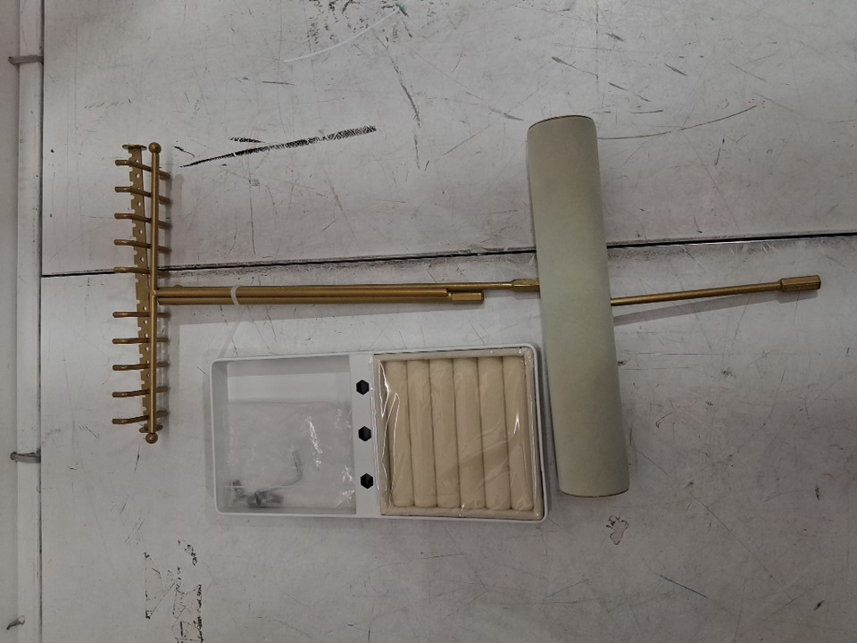 TIRZAH 3-Tier Adjustable Jewelry Holder with built in Tray - 20 Necklace Hooks/40 earring Holes - Gold/white (Model: ‎TY-ZBCJ-01)
