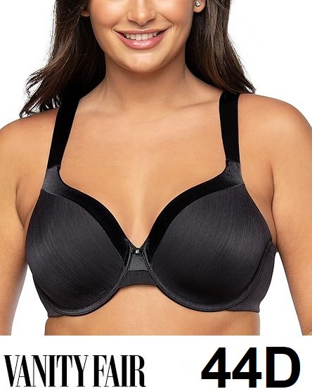 Women's Vanity Fair Illumination Zoned-in Support Full Figure Underwire Bra - 44D - BLACK (STYLE: 76338)