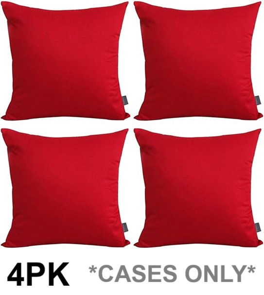 4PK THMYO 100% COTTON DECORATIVE SQUARE PILLOWCASES - 17" X 17" - RED