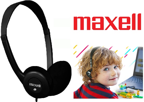 kids Maxell Lightweight Stereo Headphones WITH 6FT CORD - Black (MODEL: HP-100)