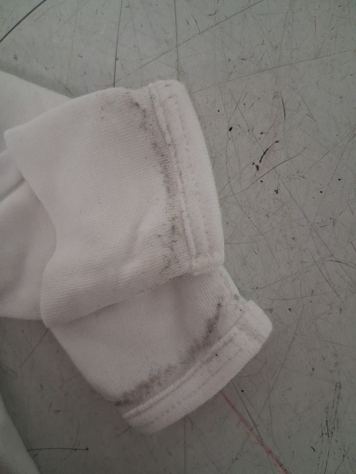 Please note one of the onesies has dirt/dust around wrist area. see photos.
