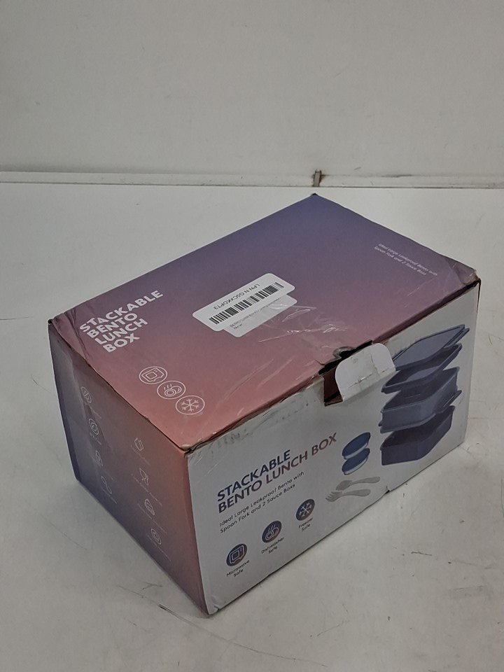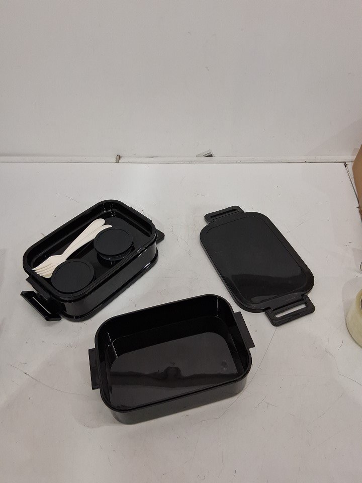 8pc stackable bento lunch box with sauce containers and utensils - black