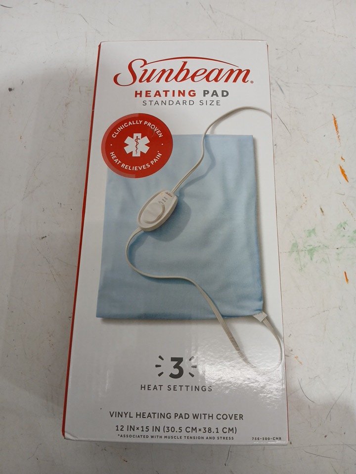 SUNBEAM CLASSIC STANDARD SIZE HEATING PAD WITH 3 HEAT SETTINGS - 12"x15" - blue (MODEL: 756-500-CNR)