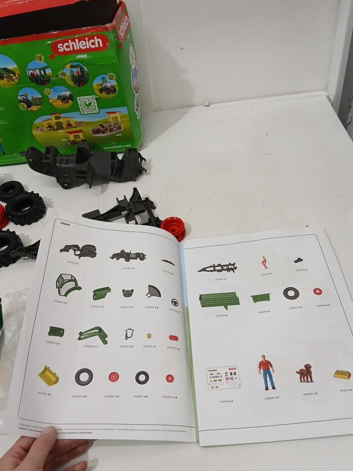 set was previously opened, cannot guarantee that all pieces are included. It does seem as though a majority, if not all are still there. Person and dog seem to be missing.