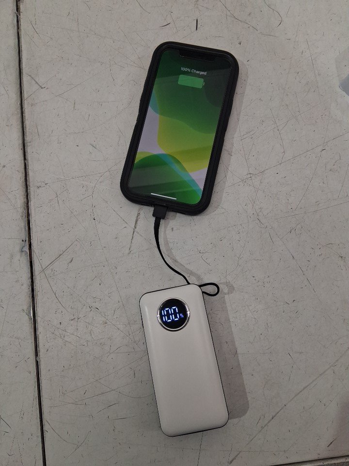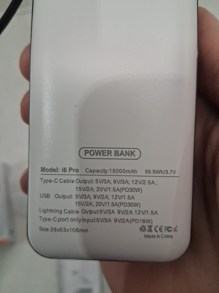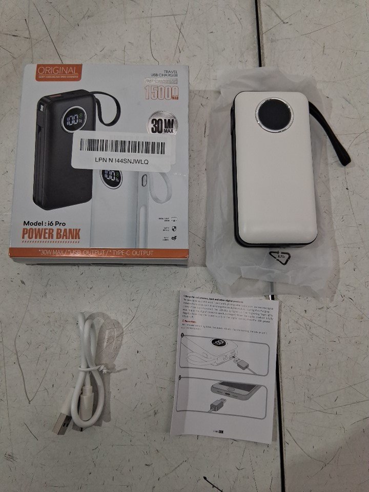 Portable FAST CHARGING Power Bank with type c and lightning bolt cable - 15000mah - white (MODEL: i6pro)