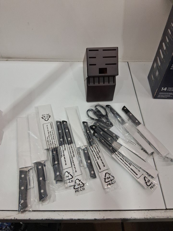 14PC HENCKLES Everedge Dynamic KNIFE BLOCK SET - BROWN/BLACK (MODEL:17610-014-0)