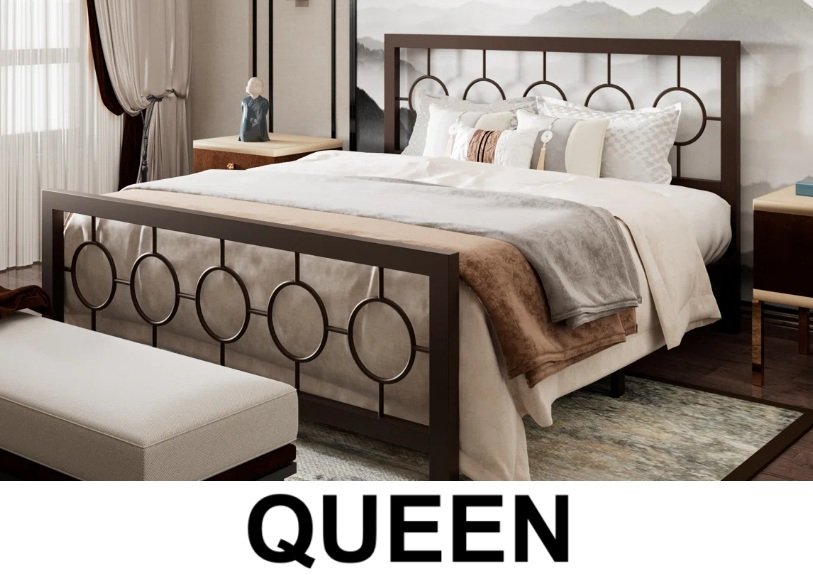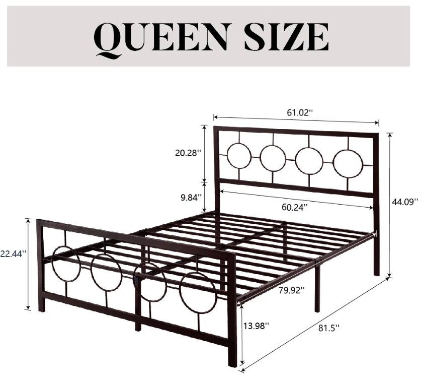 The art of living avren vintage style metal platform bed frame - queen - brown (model: USAN1048802-7)