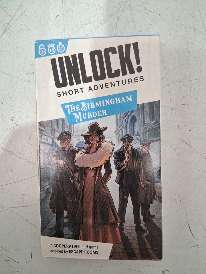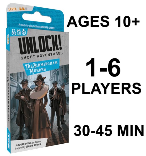 UNLOCK! SHORT ADVENTURES THE BIRMINGHAM MURDER, AGES 10+, 1-6 PLAYERS, 30-45 MIN