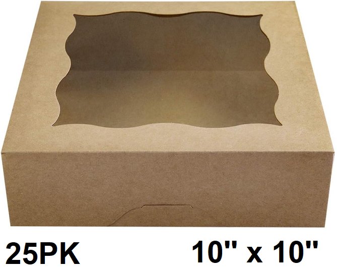 25pk kraft bakery boxes - 10'' x 10'' x 2.5'' - brown