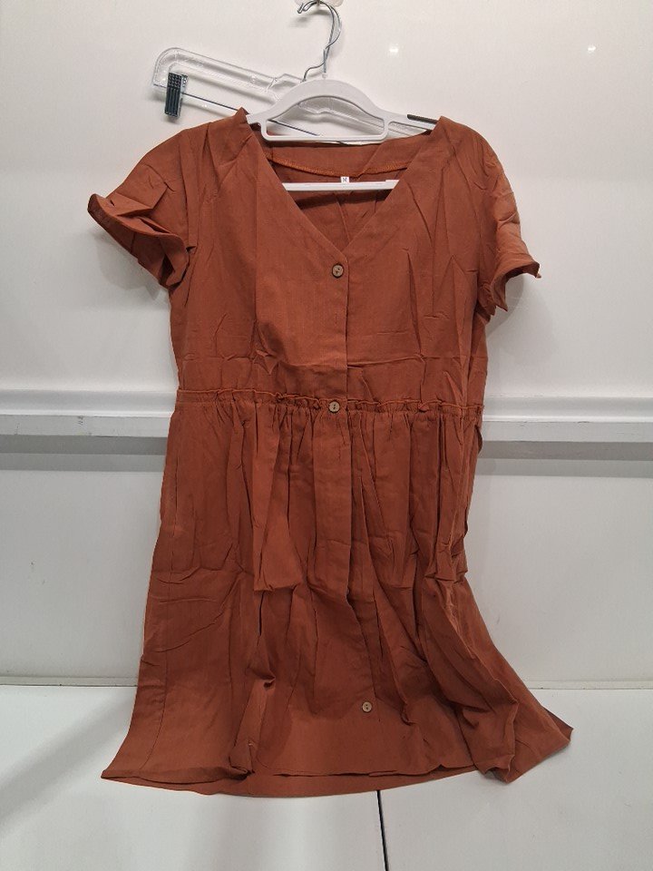 WOMENS ZEAGOO SHORT SLEEVE BUTTON DOWN SUMMER DRESS - MEDIUM - BURNT ORANGE