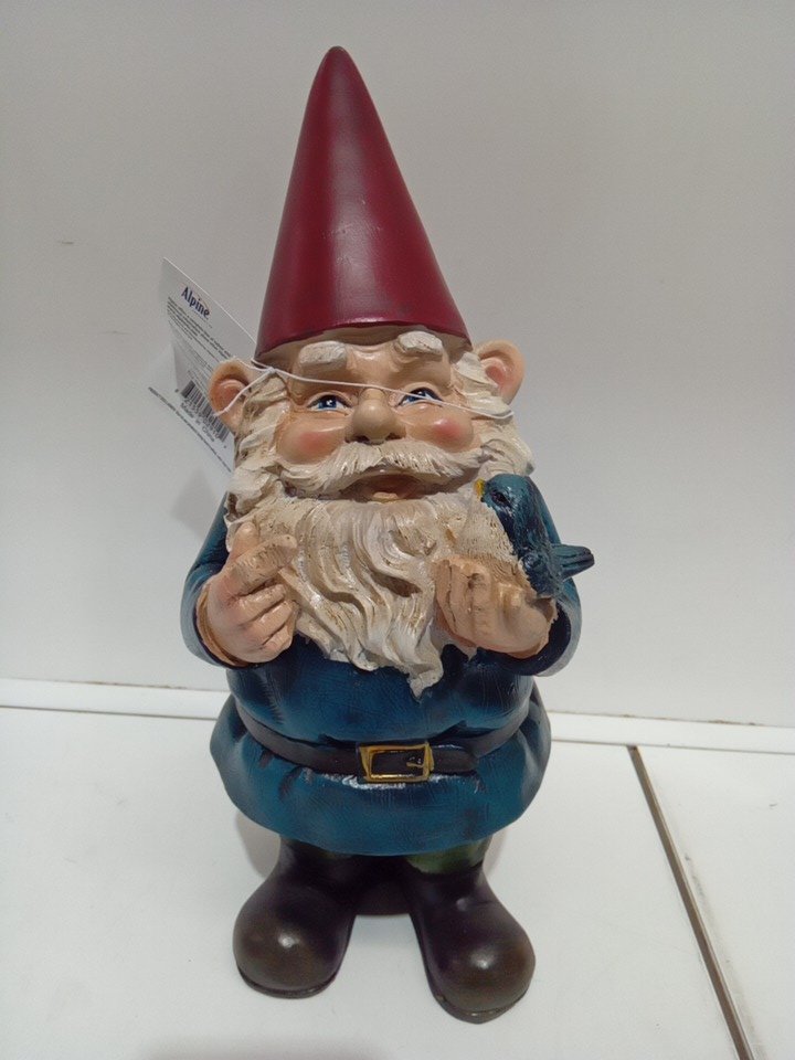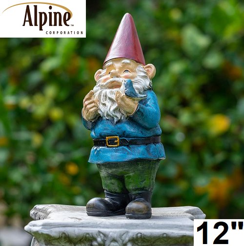 Alpine Corporation Tall Outdoor Garden Gnome with Bird - 12" - (Model: WAC406)