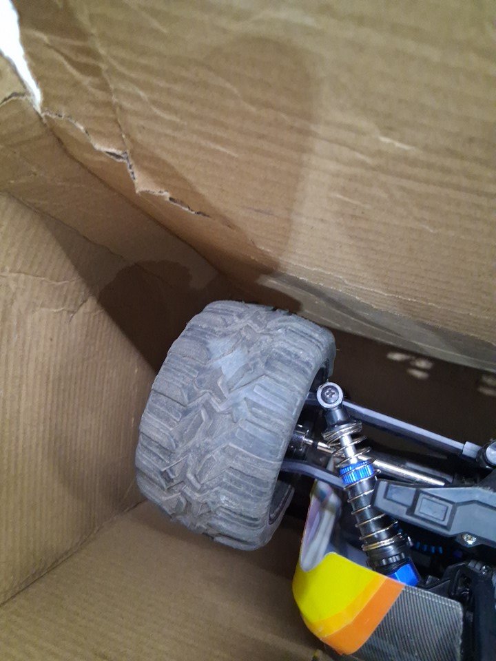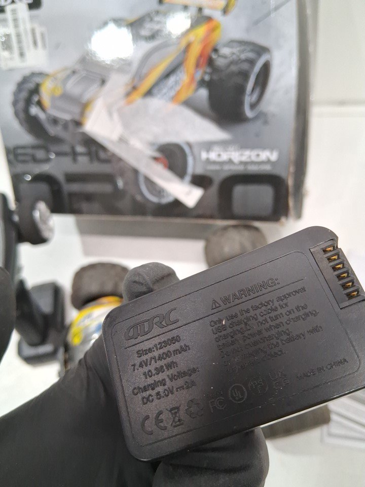 please note there is dirt on the tires from previous use, as well we are unable to test the car as we are missing the charging cord. We believe it is replaceable