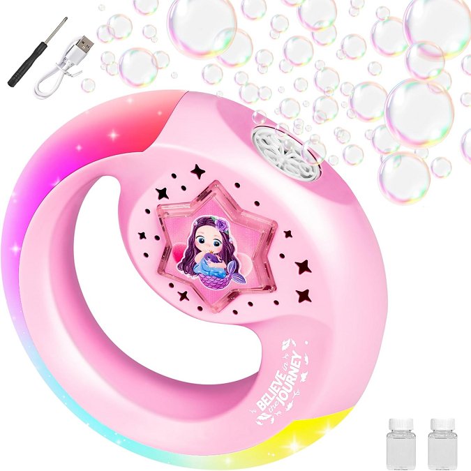 Mermaid bubble ring machine with lights - pink