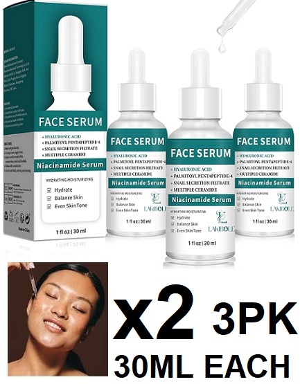 2 (3pk) Lakibole niacinamide hydrating face serum With hyaluronic acid (6 total) - 30ML each