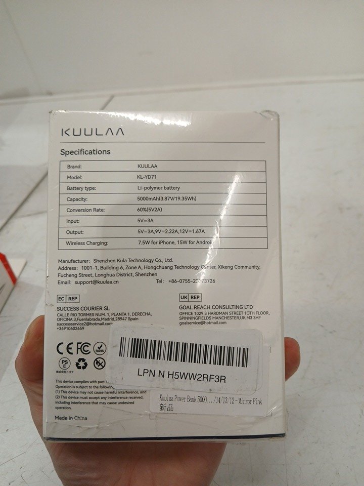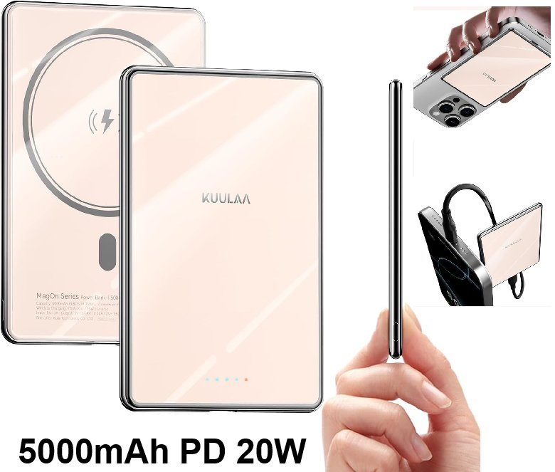Kuulaa Power Bank Portable Charger Ultra-Thin Magsafe Power Bank with LED Lights, Magnetic Wireless - 5000mAh, PD 20W - Mirror Pink (model:kl-yd71)