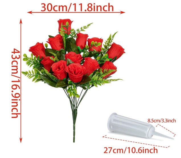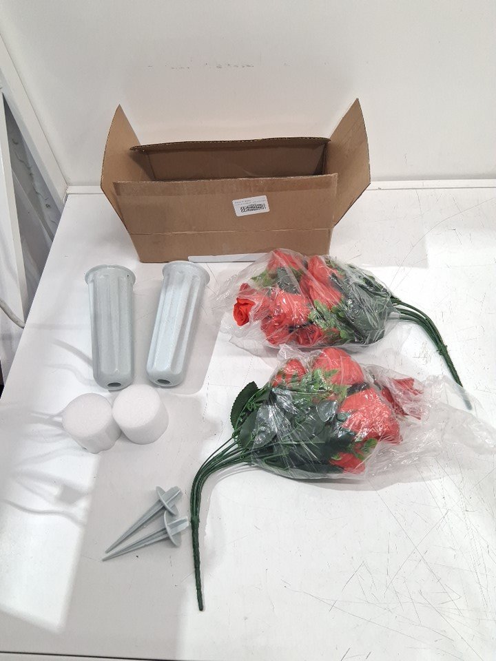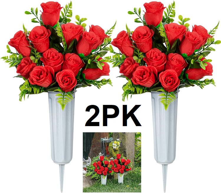 2pk xonor cemetery memorial fake artificial flower bouquet - red (MODEL: ‎mgfmh0329b)