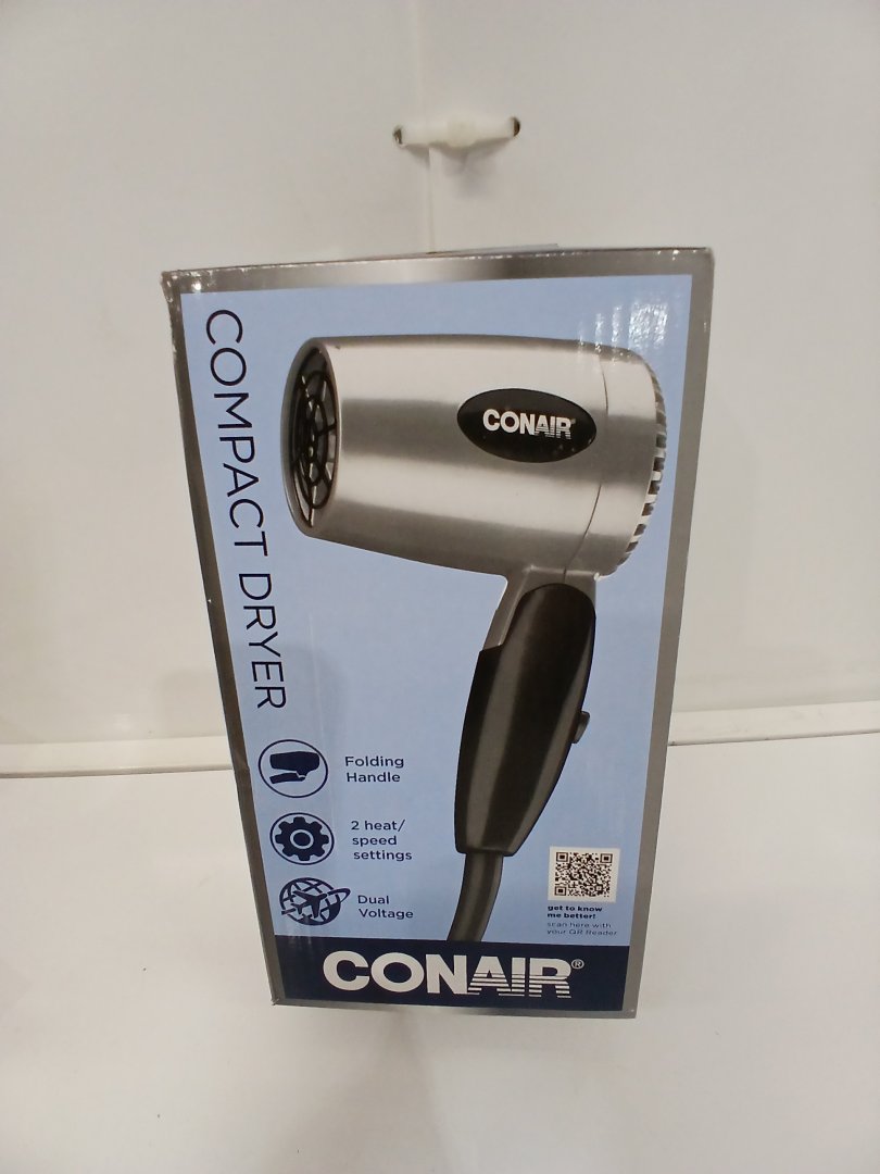 Conair compact travel hair blow dryer with folding handle - 1600W - Grey (model: 124NPC)