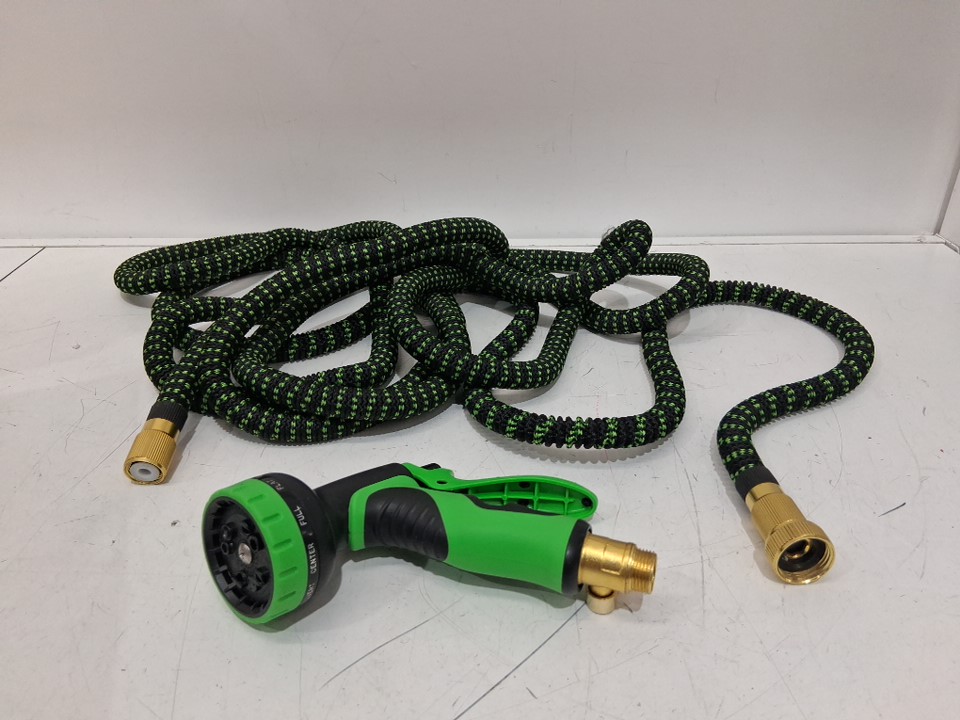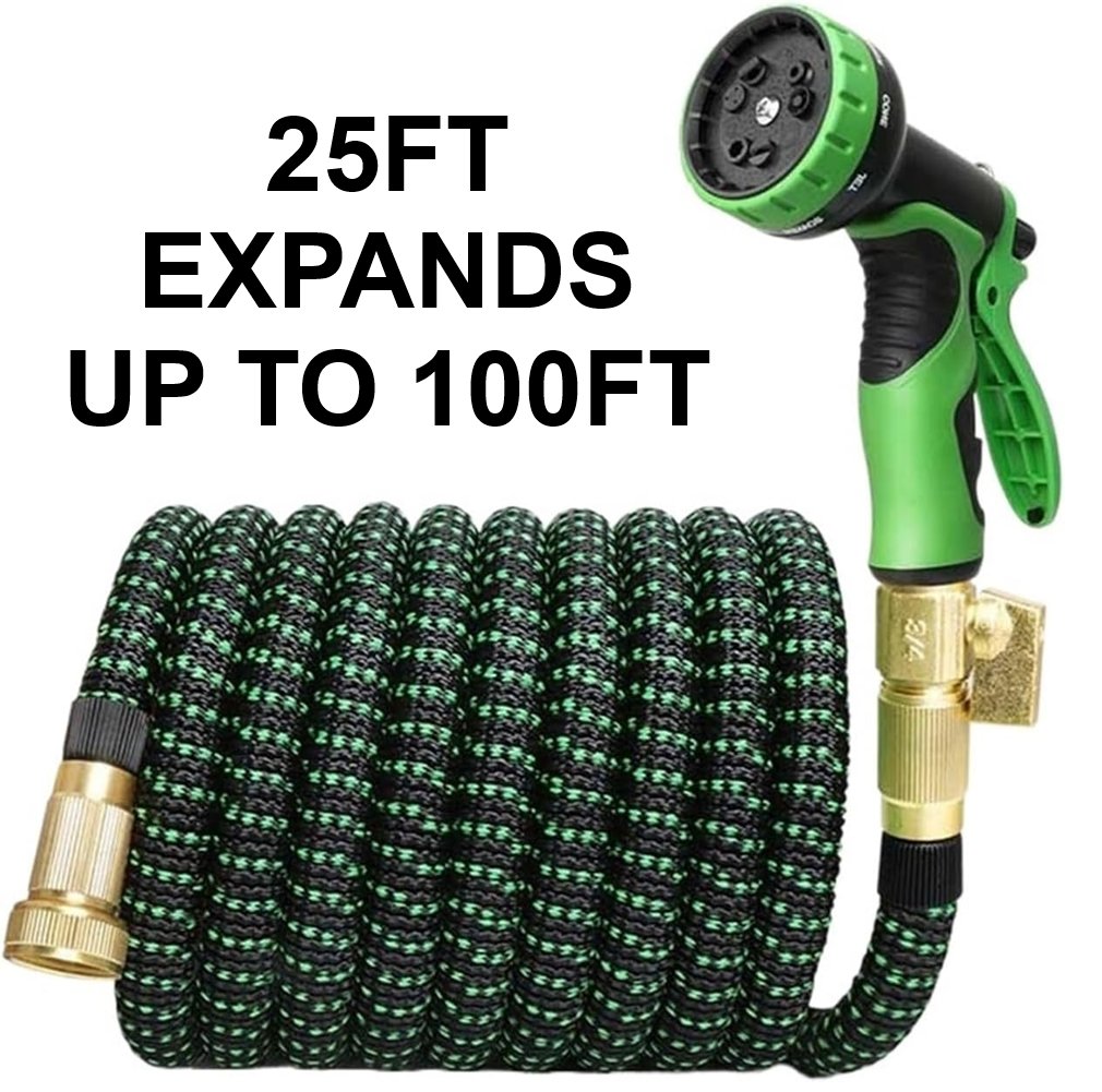 Retractable Flexible garden Hose with Sprayer Nozzle - 3/4" Fittings - 25ft - expands up to 100ft - green