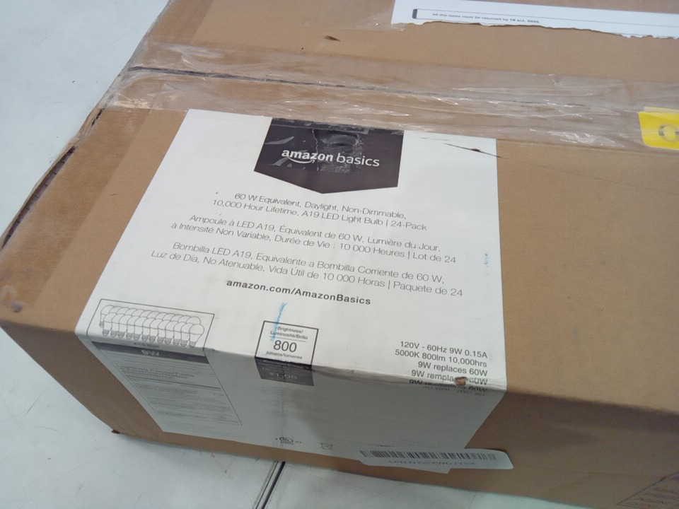 24PK AMAZONBASICS NON-DIMMABLE A19 LED LIGHTBULBS -60W EQUIVALENT 800LM 5000K DAYLIGHT