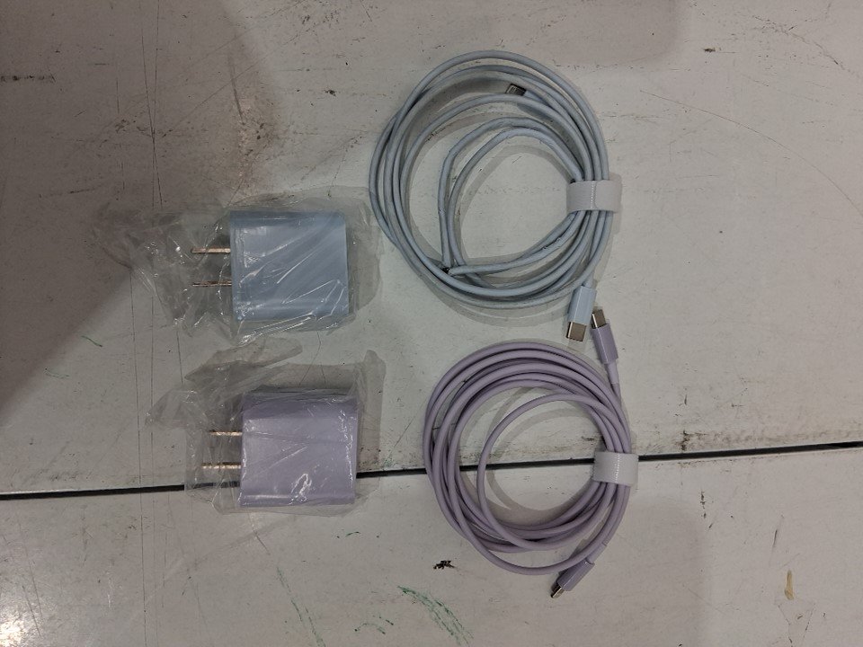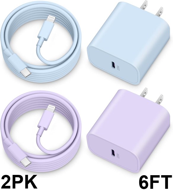 2PK USB C to IPHONE Fast Charging Plug Power Adapter with CORD - for iPhone 14 13 12 11 Pro Max Mini XR XS X 8, iPad - 6FT - Purple/Blue