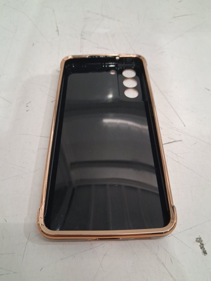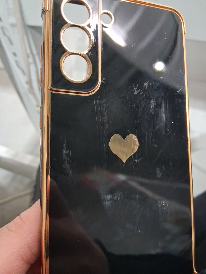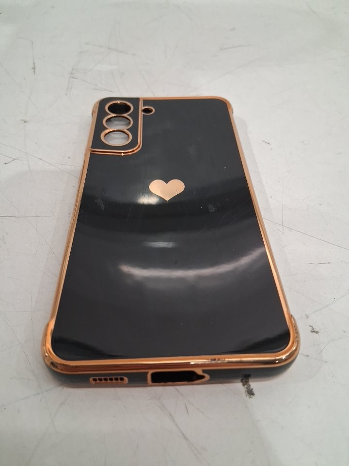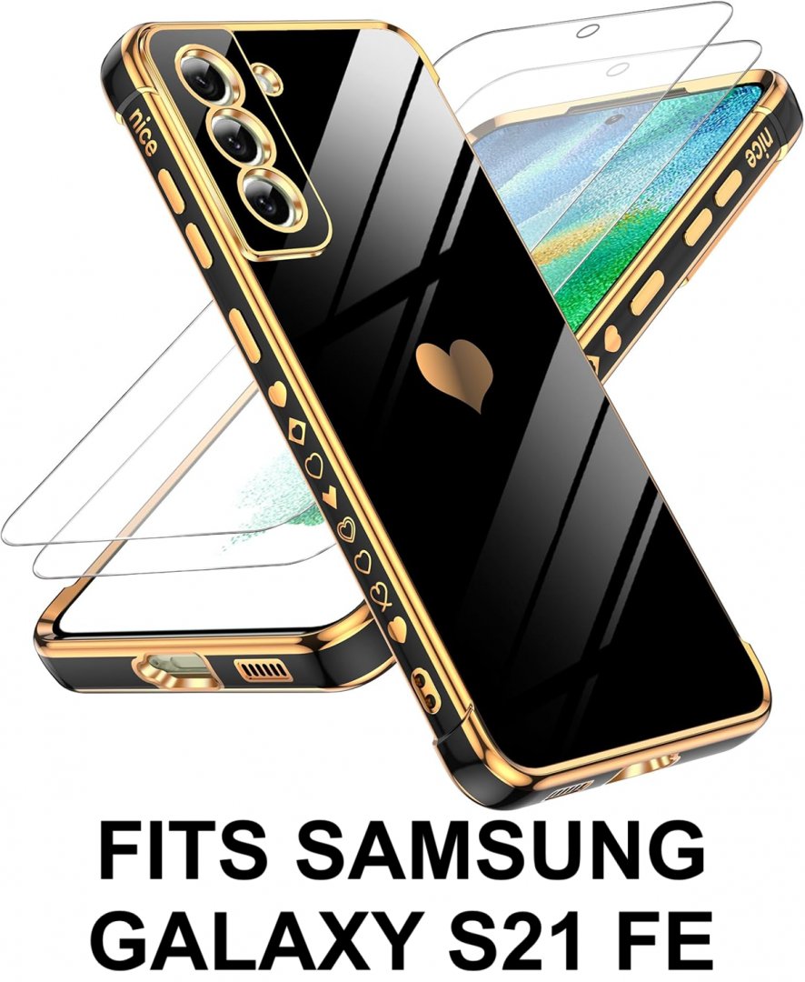 Leyi Heart Pattern Soft Plating Phone Case For Samsung Galaxy S21 FE - Black/Gold