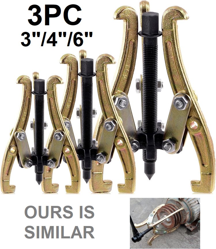 3pc professional tools Heavy Duty 3-Jaw Gear Puller Removal Tool Kit - 3"/4"/6" - universal use - multicolour